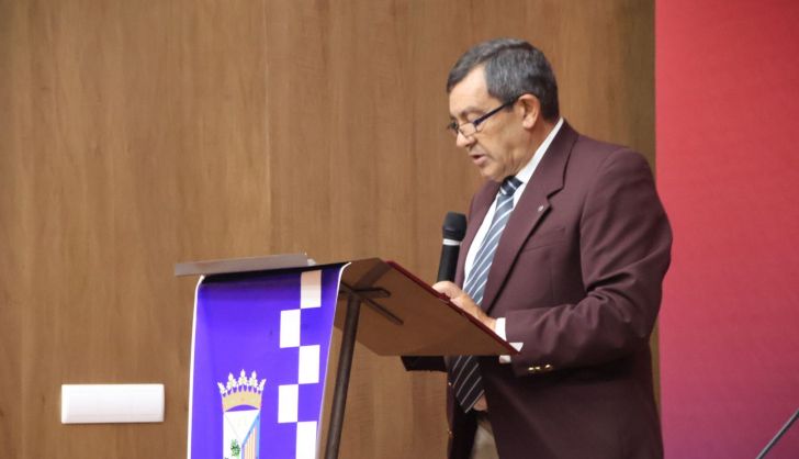 Se procede a la entrega por parte del Concejal D. Ángel Molina Martínez junto con el jefe la Policía Local D. Juan Carlos Blanco Hernández y D. Jesús Sánchez a hacer entrega de una placa conmemorativa y diploma al socio de mayor edad, D. Miguel Enrique García Luis, así como un ramo de flores a su esposa Doña Teresa Martín Sierra.