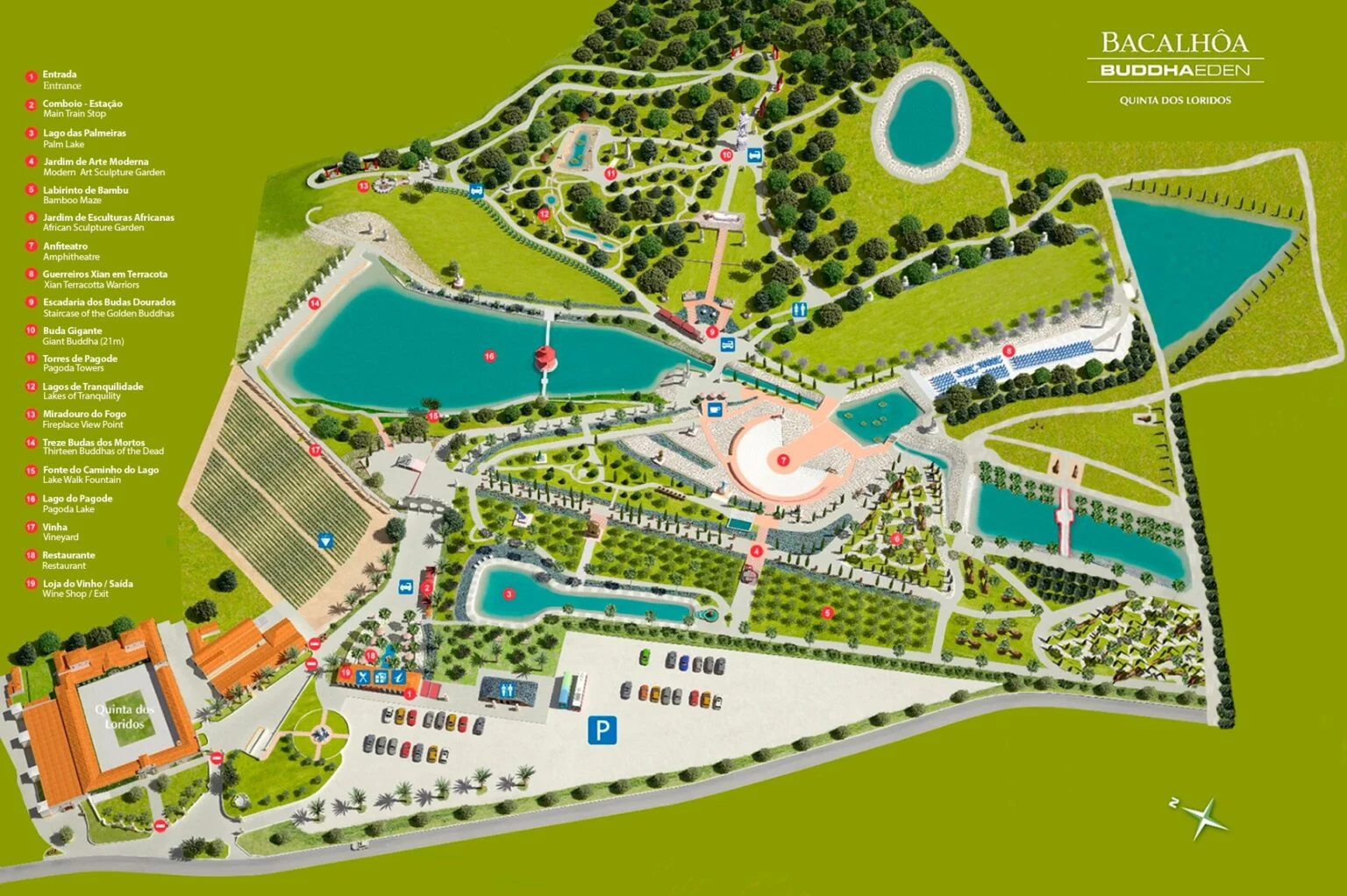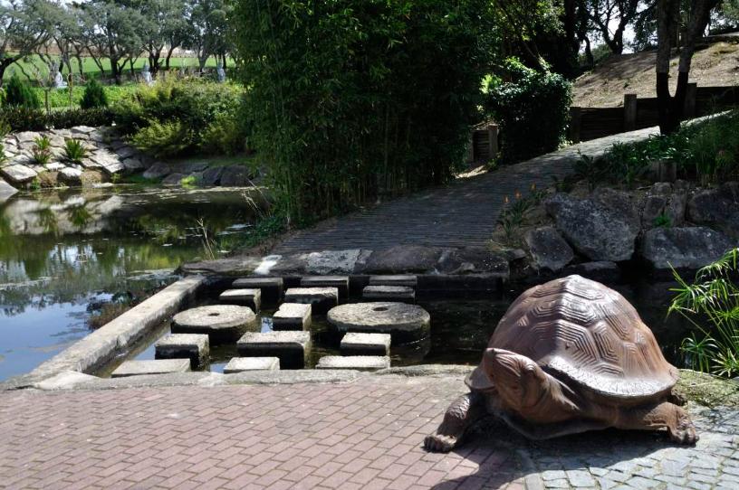 – En nuestro último día de estancia en el pais vecino, y ya de regreso, visitamos el PARQUE BUDDHA EDEN, un bellísimo jardín oriental inagurado en 2007, es el más grande de Europa y está repleto de estatuas de terracota, budas, inmensos estanques y pagodas que nos trasladaron a Asia sin salir de Europa. El jardín de Bacalhôa Buddha Eden es una creación del empresario portugués Joe Berardo, dueño de una de las mayores empresas vitivinícolas de Portugal, Bacalhôa, que le da nombre al jardín. Berardo decidió construir este espacio de inspiración oriental como un gesto de paz y tranquilidad en medio de la agitada vida moderna, y como una especie de reivindicación ante los actos de ataque a piezas culturales de los talibanes y para su construcción se ocuparon más de 35 hectáreas y se usaron más de 6.000 toneladas de granitos y mármoles.