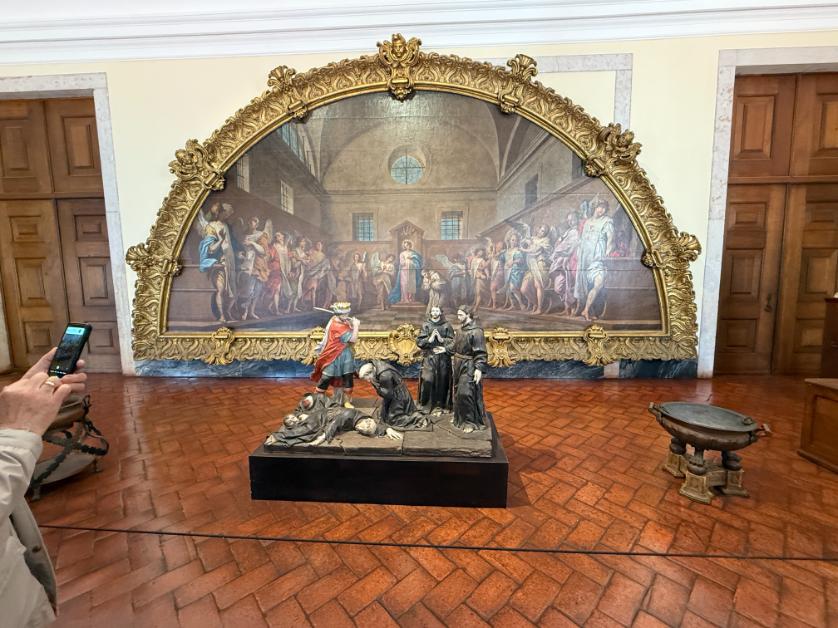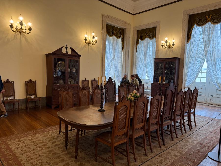 Palacio Nacional de Mafra, impresionante edificio de estilo barroco y del que recorrimos una gran parte de sus estancias, disfrutando de su belleza y de sus auténticas joyas y obras de arte que en él se conservan, como la sala del trono, la sala de música. Realmente curiosa es la enfermería, es la única enfermería del siglo XVIII que se conserva en Europa. Dividida en 16 ”alojamientos»»,» colocados a los lados de un gran pasillo y disponiendo de una cama y una cortina para guardar la privacidad del paciente. La cocina de la enfermería, destinada a preparar las comidas de enfermos y personal médico. Como no admirar la cama de estado, de estilo Imperio francés. Perteneció a la Emperatriz de Brasil, D. María Leopoldina de Austria, esposa de D. Pedro I de Brasil y posteriormente, a la Reina D. María II de Portugal o ese Comedor cuya mesa mesa y sillas fueron confeccionadas por internos de la Penitenciaría de Lisboa y ofrecidas al Rey Carlos I. Un lujo poder contemplar la maravillosa biblioteca, una joya considerada la mayo biblioteca del siglo XVIII y que alberga la nada desdeñable cifra de 35000 volúmenes.