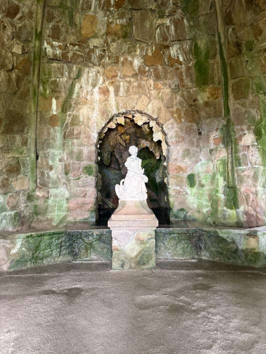 Una vez en la finca y con un plano puedes establecer el orden de visitas a los distintos lugares y edificaciones que hay. Nuestro primer destino fue el Pozo Iniciático. Este pozo tiene una profundidad de 27 metros y tiene forma de torre invertida. El descenso por este pozo se hace por unas escaleras de 9 rellanos, que simbolizan los círculos del infierno, el purgatorio y el paraíso. Se dice que estos pozos representan el viaje de iniciación en la orden masónica