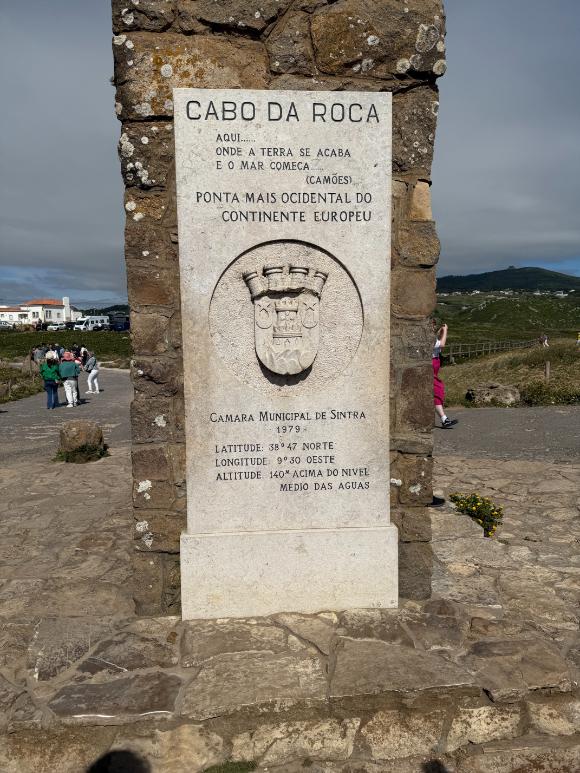 Ya por la tarde, después de comer, visitamos Cabo da Roca. Es el cabo situado en el punto más occidental del Portugal continental y, a su vez, de la península ibérica y de Europa continental. Era conocido por los romanos como Promontorium magnum, y durante la era de la navegación a vela como la «Roca de Lisboa».