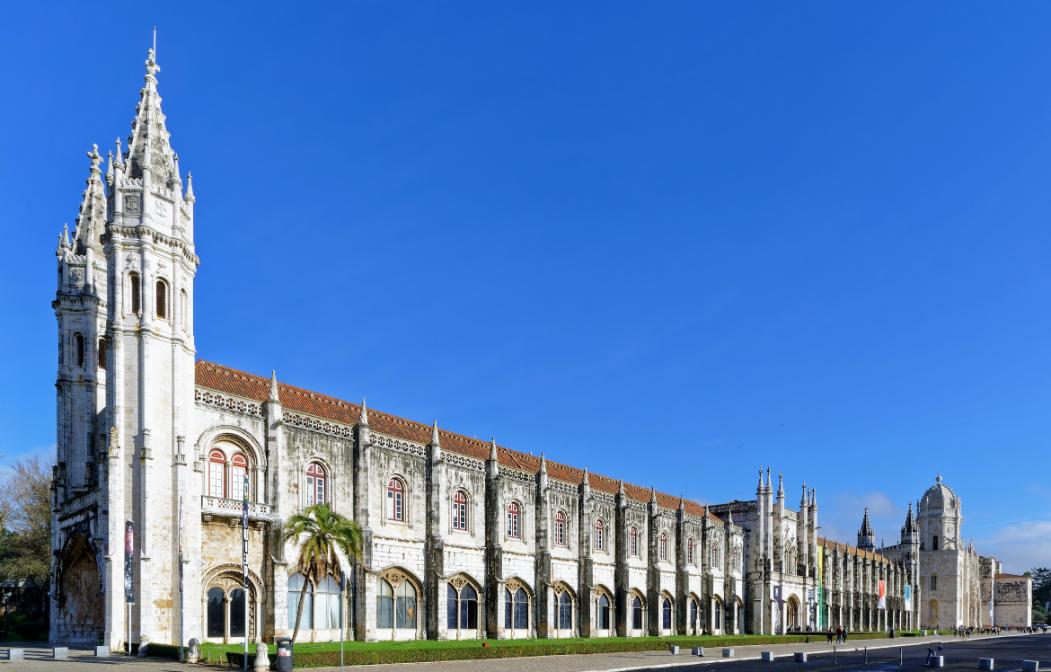 Lisboa. Paramos muy cerca del lugar de nuestra primera visita, que no es otra que el monasterio de los Jerónimos, donde pudimos contemplar el interior de la iglesia. Iglesia que consta de una sola nave con 6 columnas. En su interior se encuentra la tumba de Vasco de Gama.